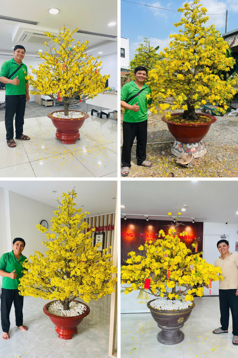 Ngoài ra, Mai Tết Phong Hồng còn cung cấp dịch vụ nhận chăm sóc mai trước và sau tết uy tín, đảm bảo cây mai của quý khách được chăm sóc cẩn thận, cho hoa nở rộ vào đúng dịp Tết hàng năm. Nếu có nhu cầu thuê hoặc mua mai tết, quý khách hàng vui lòng gọi số Hotline: 0909 997 939 hoặc liên hệ các điểm bán và cho thuê của Mai Tết Phong Hồng chúng tôi để được đội ngũ nhân viên hỗ trợ tư vấn lựa chọn cây mai phù hợp. Xin cảm ơn và kính chào!
